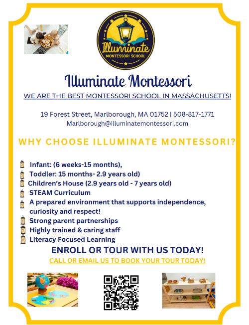 Illuminate Montessori is a new school in Marlborough that is currently seeking enrollment. This month they will be hosting a Fall Fest on November 8th with a bouncy house, raffle, fall crafts and games, snacks, and music!