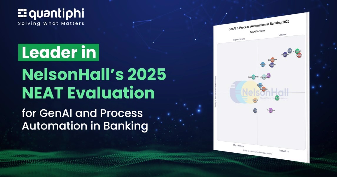 Quantiphi has been named a Leader in the 2025 NEAT Evaluation for GenAI and Process Automation in Banking by NelsonHall. The recognition highlights Quantiphi’s work helping banks use generative AI and automation to improve processes like customer onboarding, document management, compliance, and overall customer experience. The report also notes the company’s strong cloud partnerships and proprietary tools that help financial institutions modernize and operate more efficiently.