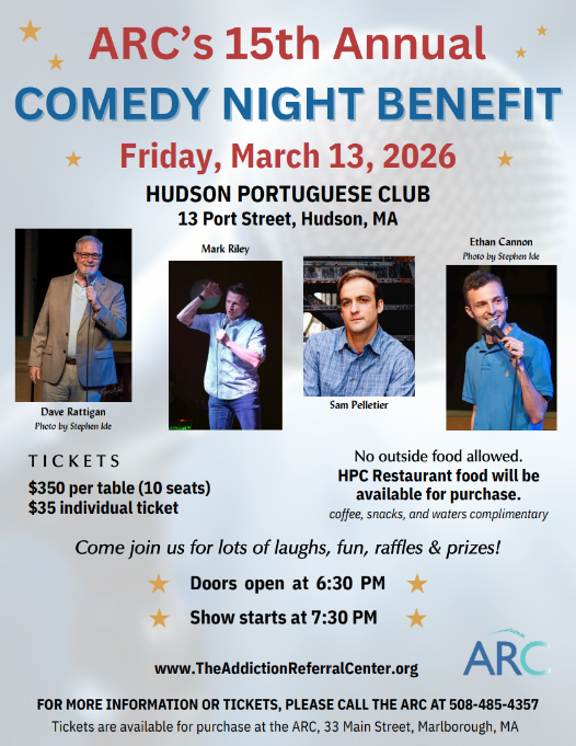 Marlborough's Addiction Referral Center will be hosting their 15th annual Comedy Night Benefit on Friday, March 13, at the Hudson Portuguese Club.